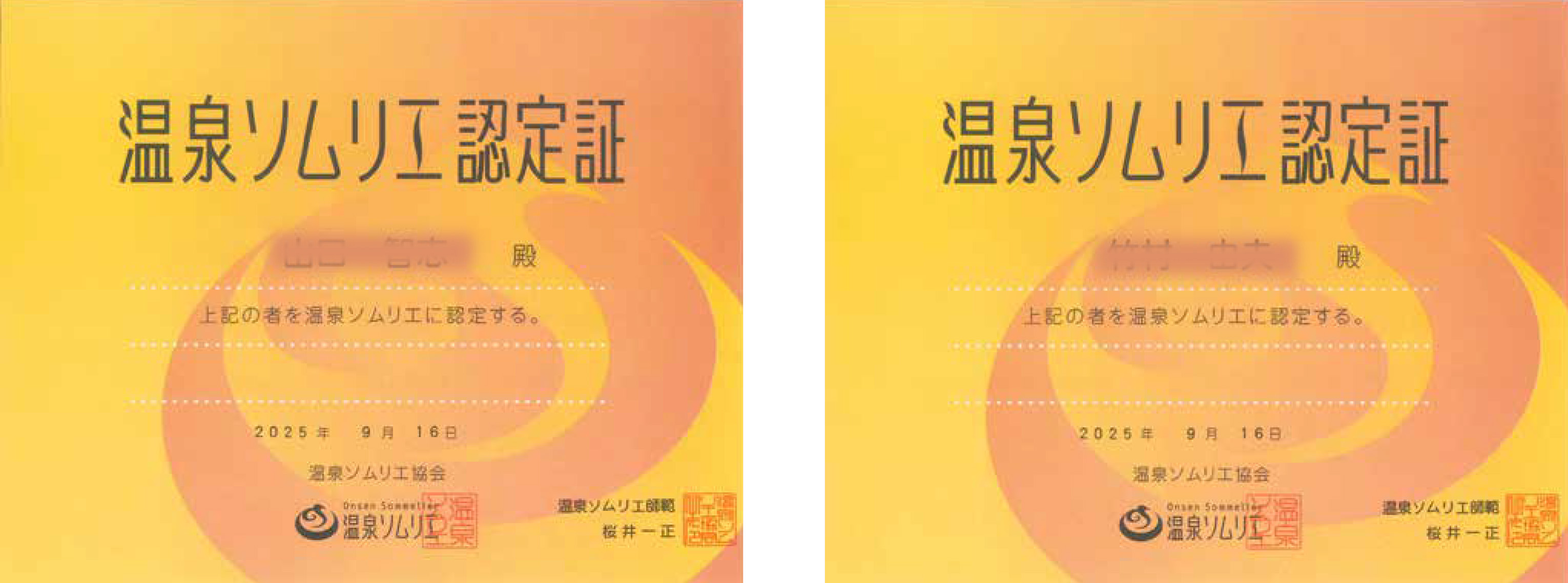 この度湯楽スタッフ2名が温泉ソムリエ協会が行う講習会を受講し